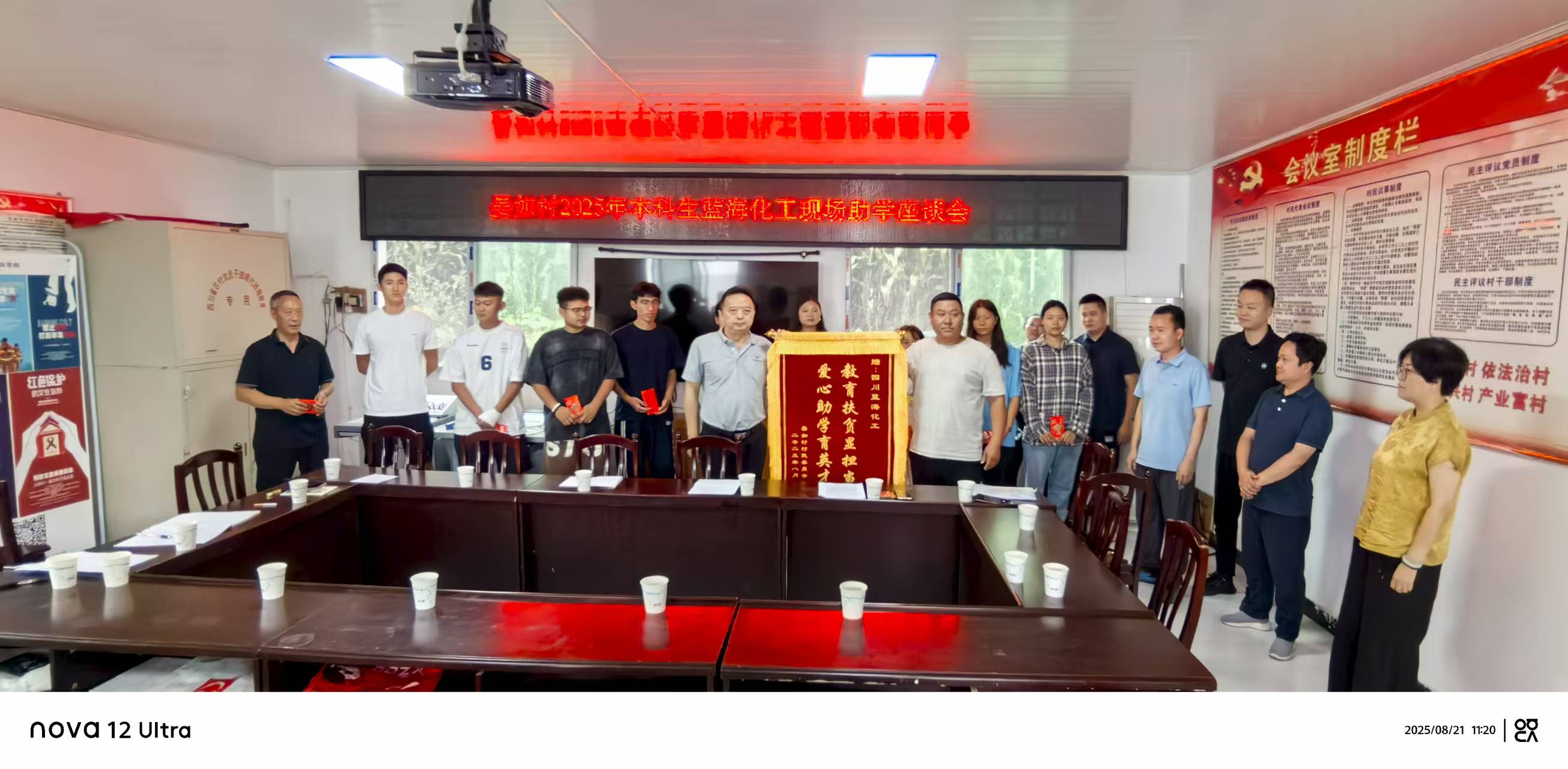 8月21日,雅安市石棉生态环境局局长夏天成、回隆镇党委副书记及镇长刘国军、晏如村村支书毛新兵携手四川蓝海化工(集团)化工有限公司党支部与工会,在回隆镇晏如村村委会共同举办2025年“万企兴万村”行动之“金秋助学”活动,为晏如村2025级大学新生提供奖励帮扶。