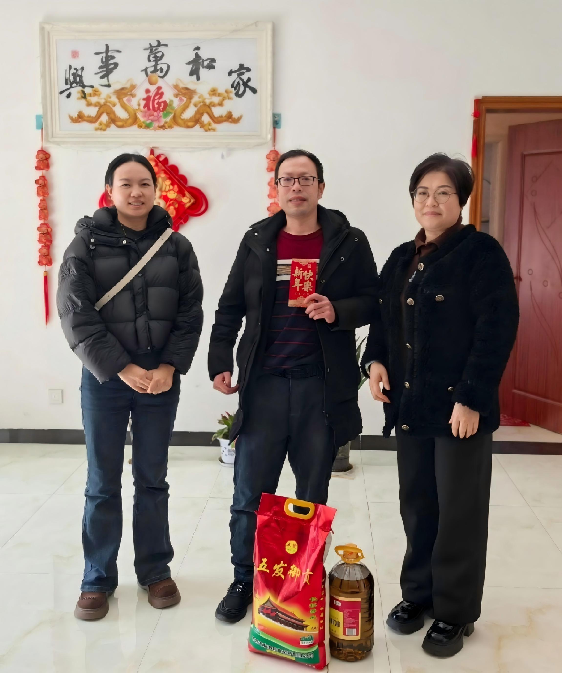 慰问组一行深入了解了职工的工作生活近况、家庭实际困难及身体恢复情况,鼓励大家保持乐观积极的心态,勇敢面对暂时的挑战,并为他们送上慰问金、米、油等生活物资以及新春的美好祝福。